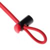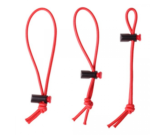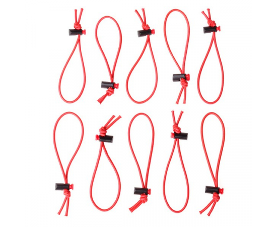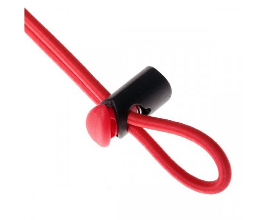 As cordas são feitas de elástico e são fornecidas com um grampo de travamento.