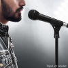 Se não quiser segurar o microfone na mão, pode montá-lo no suporte fornecido, que possui uma conexão rosqueada fêmea de 3/8 "na parte inferior.