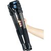 As pernas do tripé podem ser dobradas 180° para um tamanho compacto e colocadas no estojo de transporte com a cabeça esférica acoplada.