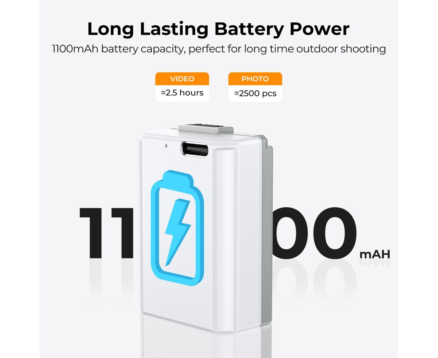 Capacidade: 1100mAh | Tipo: íon de lítio | Potência: 7.9Wh, carregue totalmente a bateria em cerca de 2,5 horas com um adaptador de energia 5V/2A.