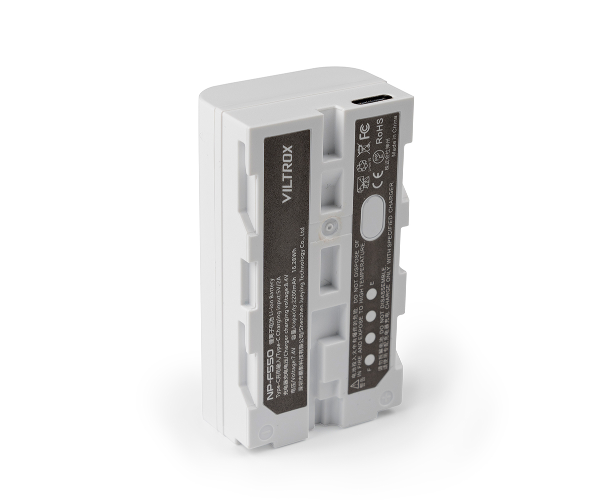 1x VILTROX Bateria NP-F550 2200mAh com porta USB-C