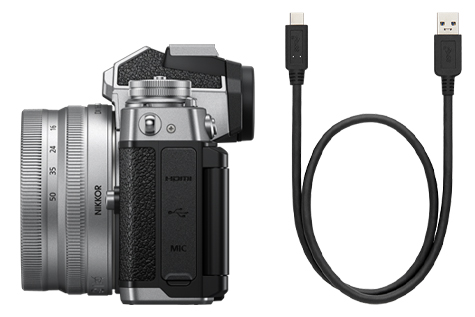 Pode carregar (com a câmara desligada) ou ligar a sua Z fc através de USB.