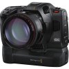 O design elegante da Blackmagic Pocket Cinema Camera inclui um número incrível de recursos de cinema digital de ponta em um corpo portátil e miniaturizado. Feita de fibra de carbono e policarbonato, a câmera conta com uma empunhadura multifunção que coloca todos os controles de gravação, ISO, balanço de branco e ângulo do obturador na ponta dos seus dedos. Por se tratar de uma câmera digital cinematográfica avançada, o sensor foi desenvolvido para reduzir o ruído térmico, proporcionando sombras mais limpas e ISO mais elevado. Além disso, o LCD de 5 polegadas permite obter o foco perfeito em resoluções 4K e 6K. Você também obtém uma porta de bateria removível, quatro microfones à prova de impacto, encaixe de lente de alta resistência e um alto-falante integrado.