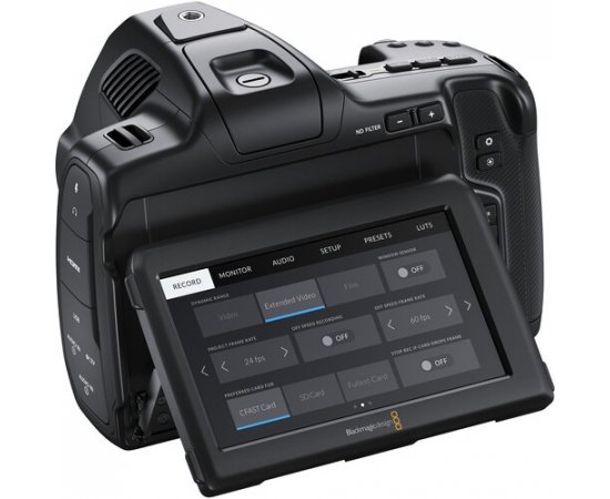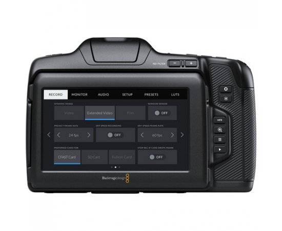 A Blackmagic Pocket Cinema Camera 6K Pro inclui recursos profissionais extras, como filtros ND integrados de 2, 4 e 6 stops e LCD HDR de 1500 nits com ajuste de inclinação, ideal para uso sob luz solar intensa. Também inclui duas entradas de áudio miniXLR e uma bateria NP-570 maior.