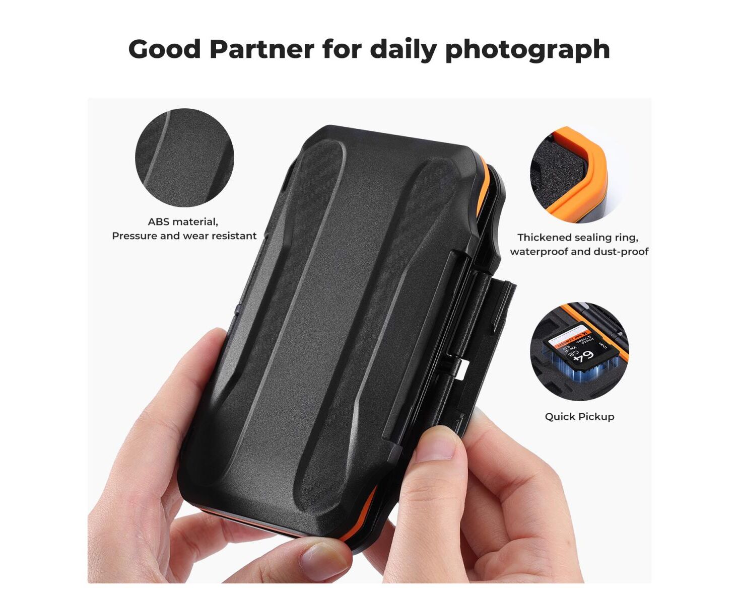 O invólucro externo é feito de material ABS premium, com fecho de pressão durável e resistente à pressão e anel de vedação de silicone antipoeira que podem evitar melhor a entrada de água, poeira e detritos.