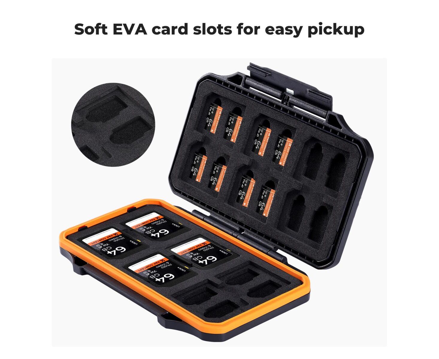 Forro de EVA macio, design de encaixe preciso, fácil acesso para evitar danos ao cartão de memória.