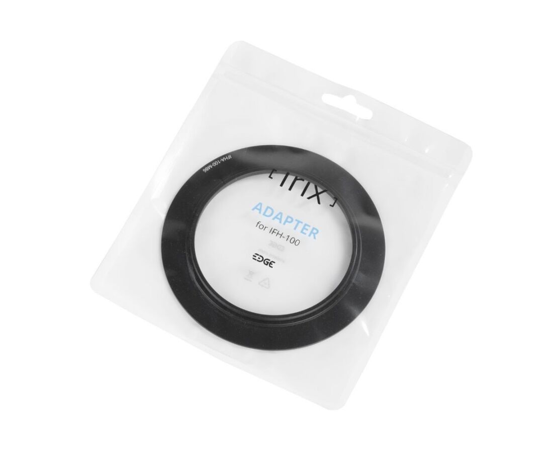 O adaptador Irix Edge 100 permite montar o suporte de filtro Irix Edge IFH-100 na lente com um diâmetro de rosca específico. O adaptador é montado na rosca frontal da lente.