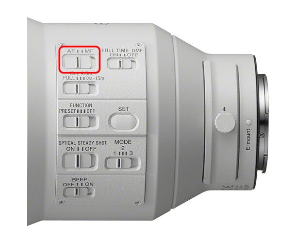 Após um ponto de focagem predefinido ser memorizado através do botão SET, rodar o anel de função permitirá aceder ao ponto de focagem predefinido se o modo PRESET estiver ativo. Esta é uma forma ideal de predefinir pontos de focagem para ação desportiva rápida, por exemplo. Funciona nos modos AF e MF e não é afetada pelas definições do limitador de gama de focagem.