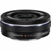 Distinguido pelo seu formato fino, o preto M.Zuiko Digital ED 14-42mm f/3.5-5.6 EZ da Olympus tem um zoom equivalente de 28-84 mm versátil projetado para câmeras Micro 4/3 mirrorless.