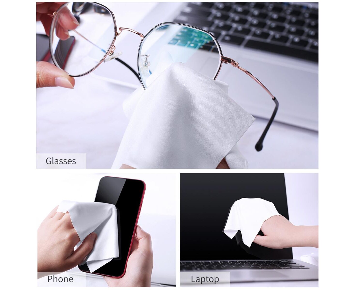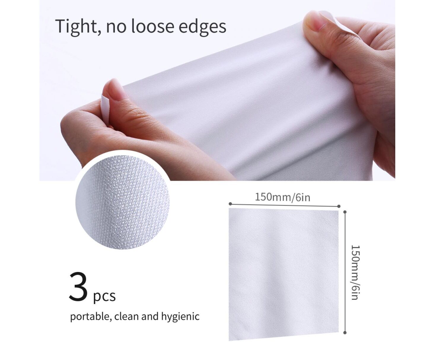 Pano de limpeza de 150 * 150 mm, textura delicada, macia e sem fiapos, pode ser lavado e reutilizado.