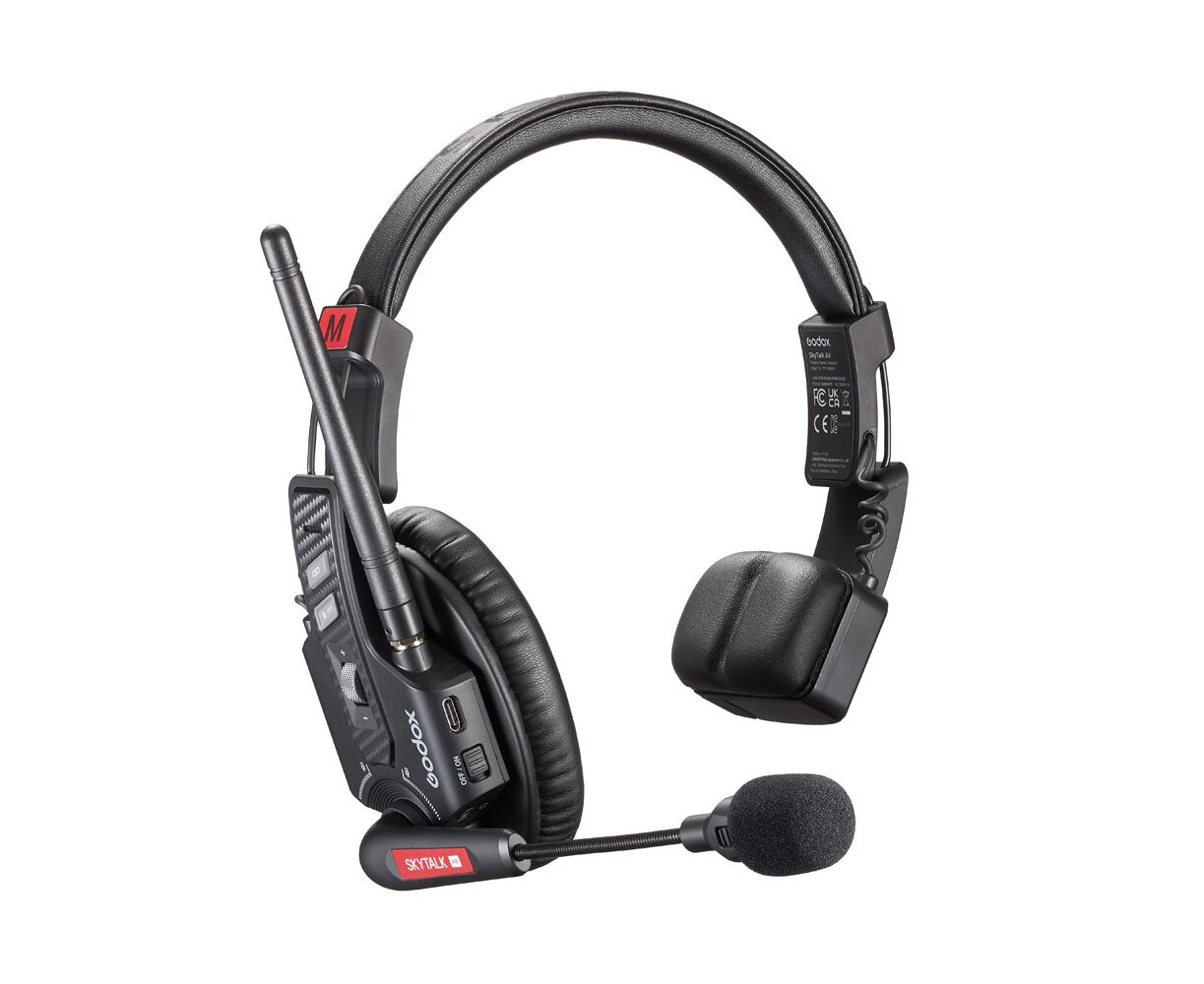 The Godox Skytalk Air Intercom System headset is a full-duplex wireless intercom system for direct and clear communication during film productions, live broadcasts, weddings and aerial shoots. The system combines professional ENC noise cancellation, 500-meter range, 20 hours of battery life, and a lightweight design weighing just 207 grams.