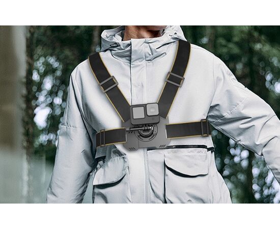 The Puluz harness is designed for ease of use and comfort. The attachment system is extremely simple: just press the buttons on both sides with one hand and rotate 90 degrees to quickly remove or fold the accessory. The flexible fit and four adjustment clips make the harness suitable for people of all body types, ensuring comfort and stability during use.