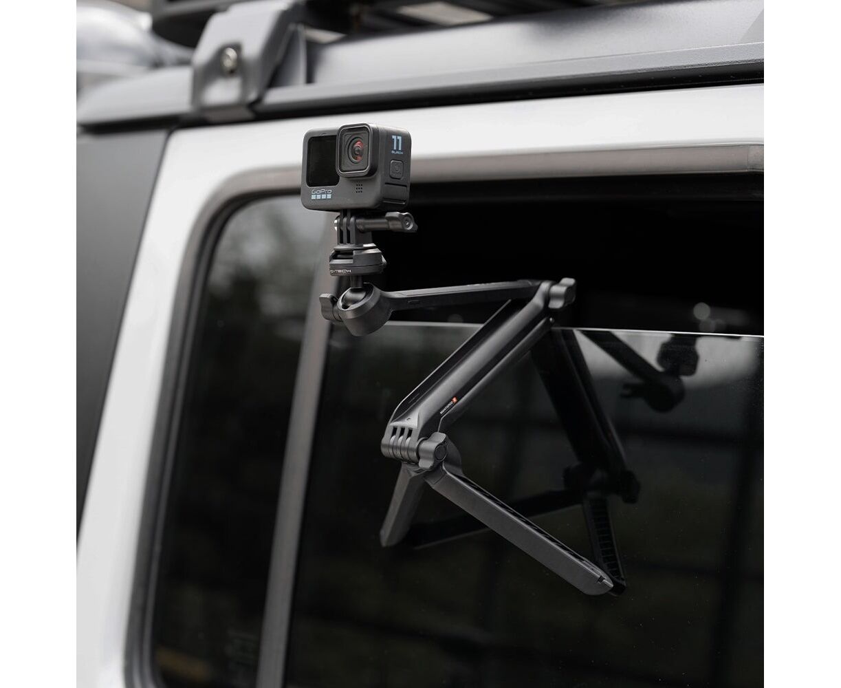 With a camera adapter and a 1/4" adapter, it is compatible with many action cameras,
