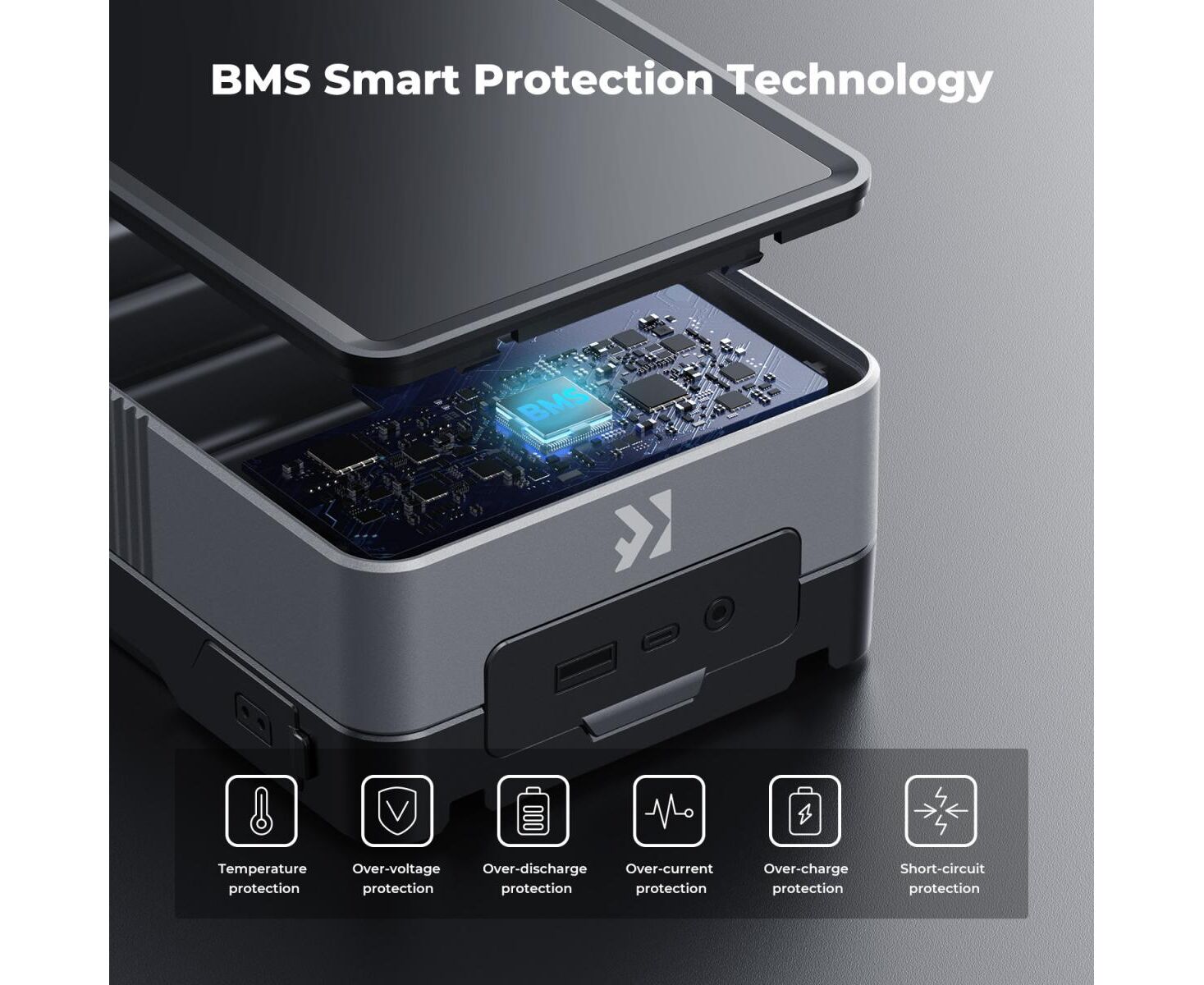 Built-in BMS technology ensures optimal performance and protects against short circuits, overloading, overheating, and more.