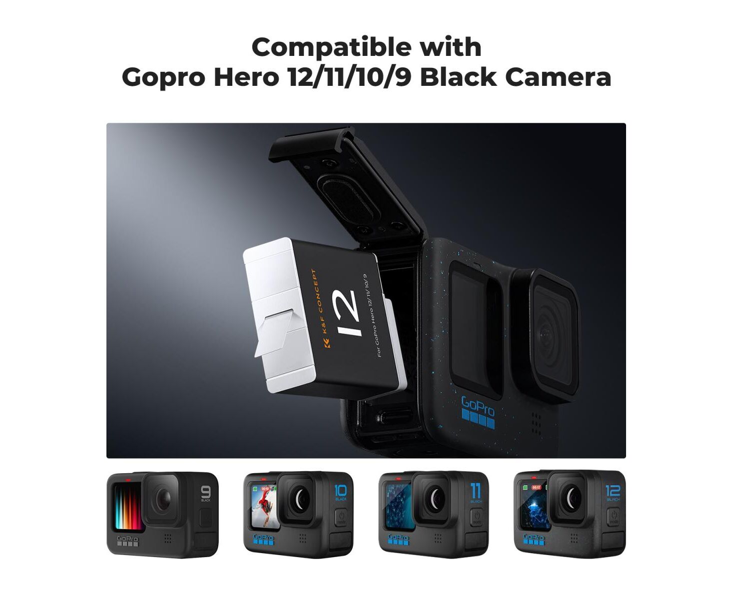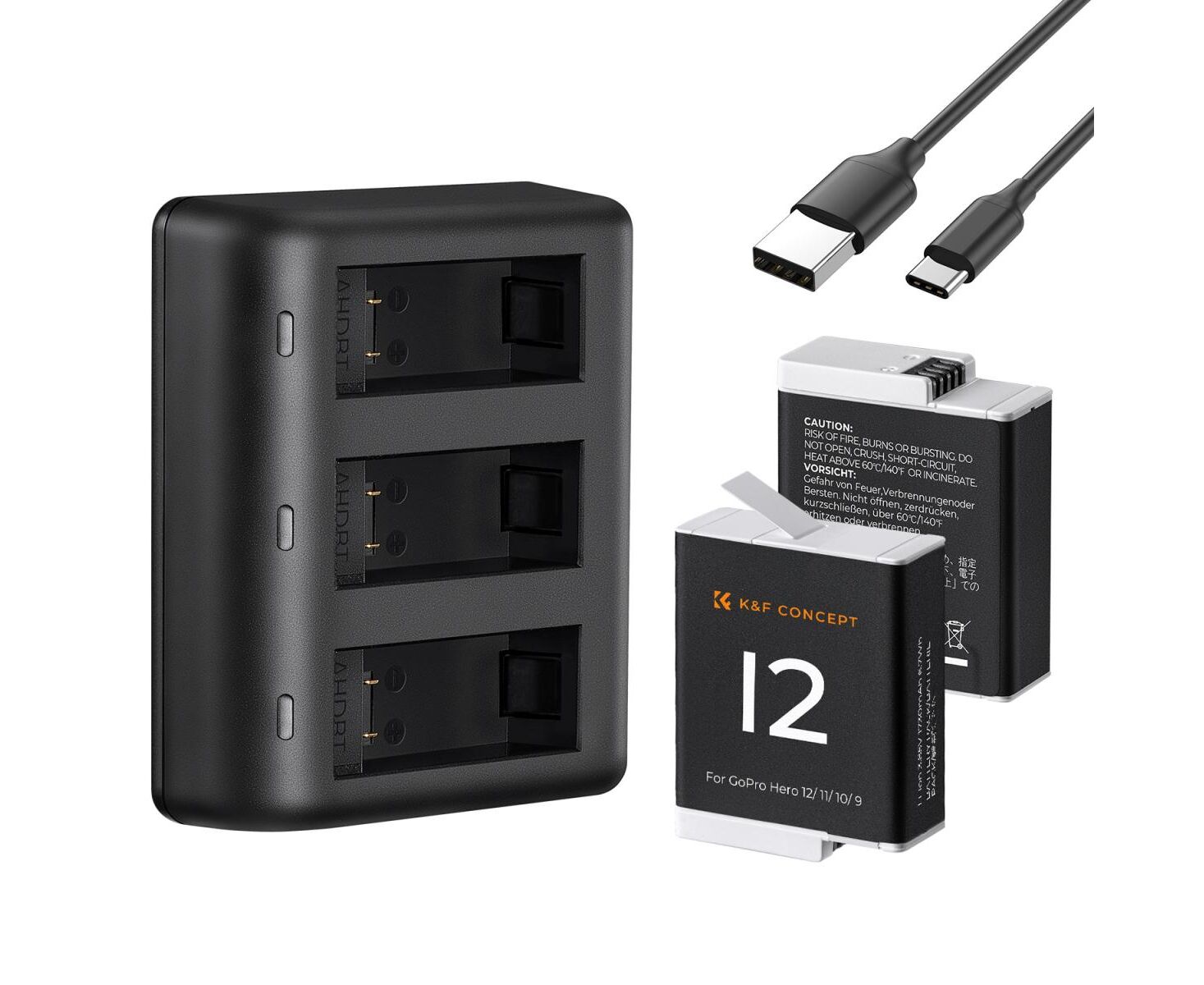 K&F CONCEPT Dual Charger Kit + 2 Batteries Gopro Hero 12/11/10/9