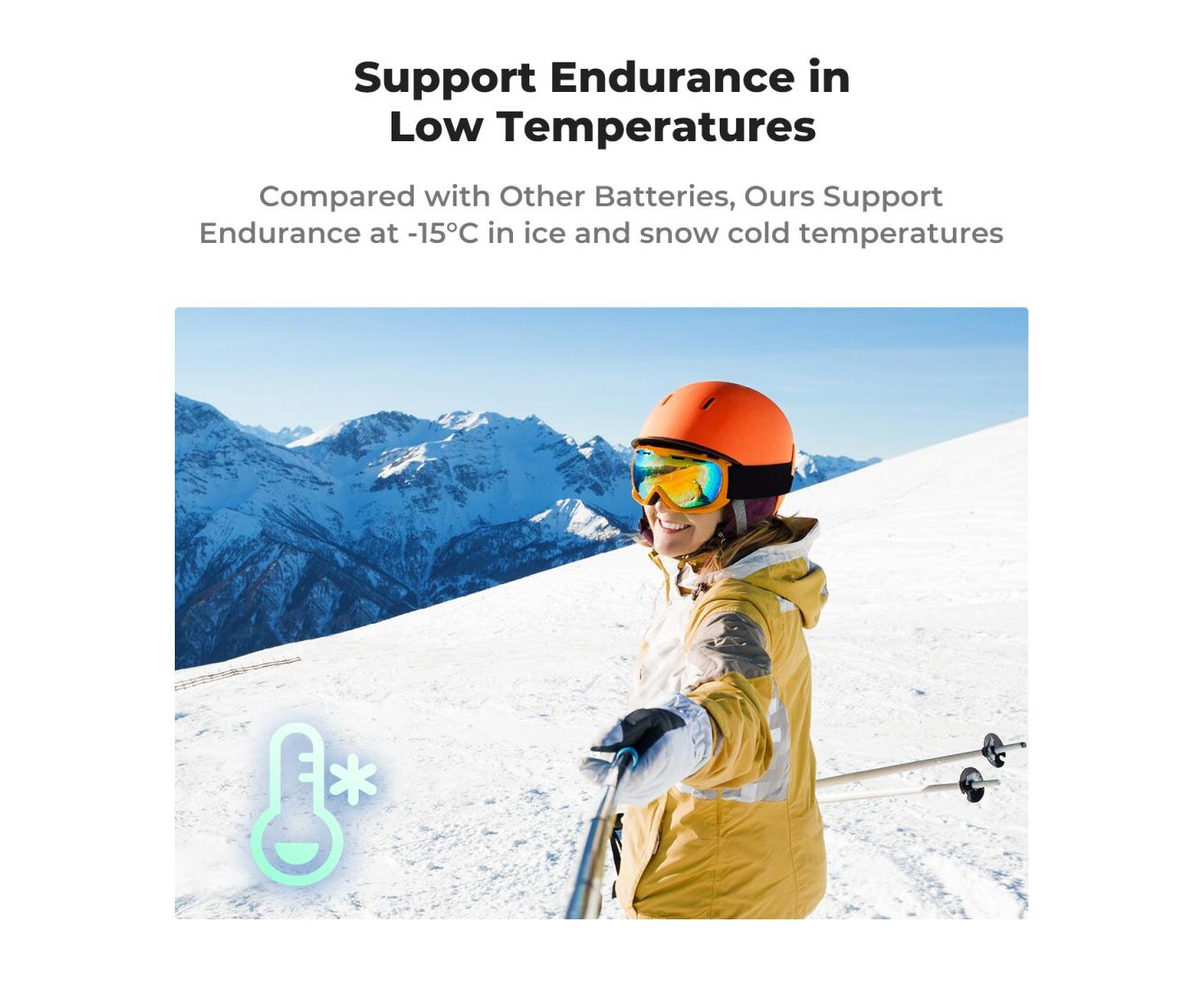 Battery operating temperature of -20°C~55°C, compared with the conventional battery operating temperature of -10°C, this battery is more resistant to low temperatures, in the lower temperature environment it still has power to withstand the firing!