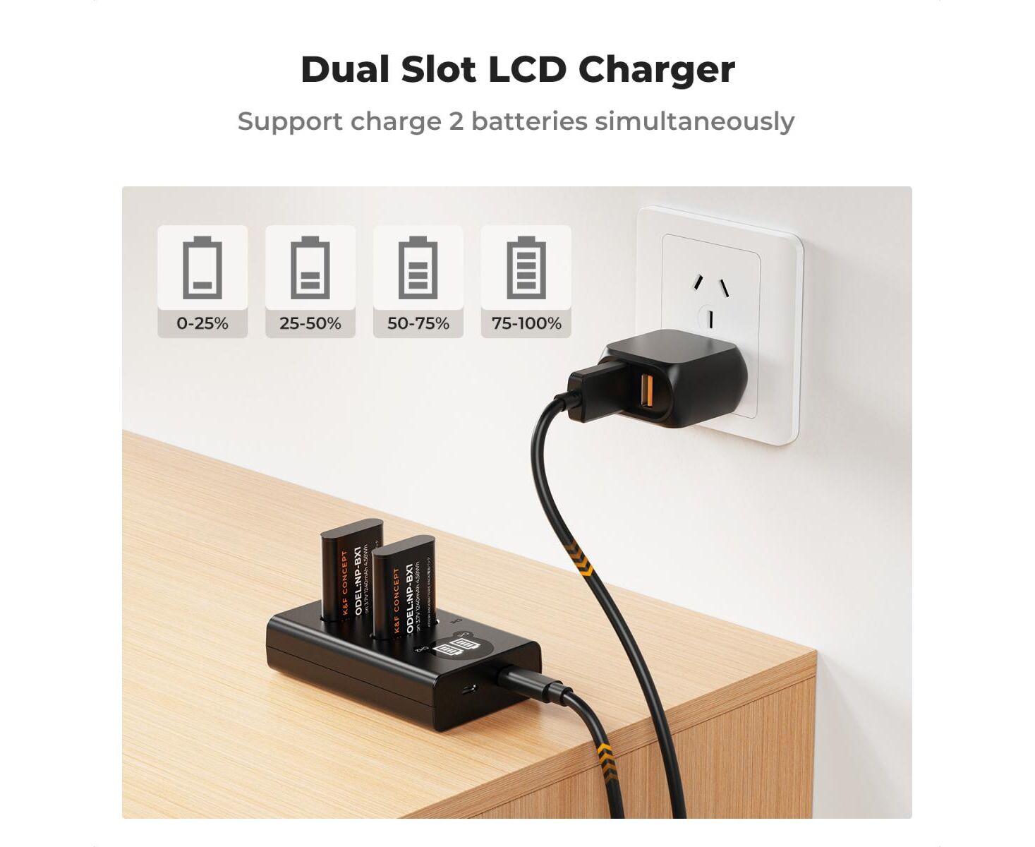 K&F CONCEPT Kit 2 NP-BX1 1240mAh Batteries with Dual Charger