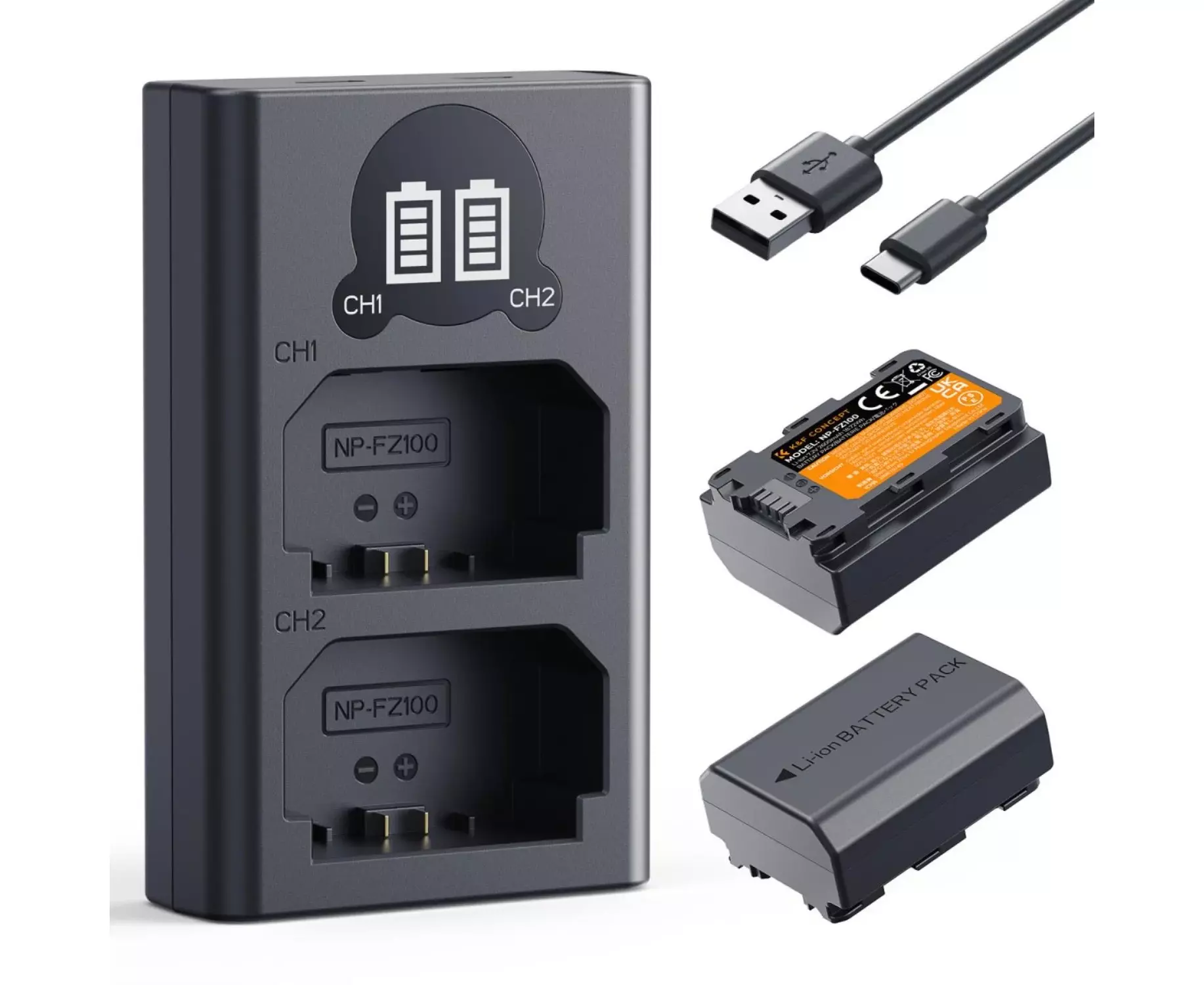 K&F CONCEPT Kit 2 NP-FZ100 2600mAh Batteries with Dual Charger