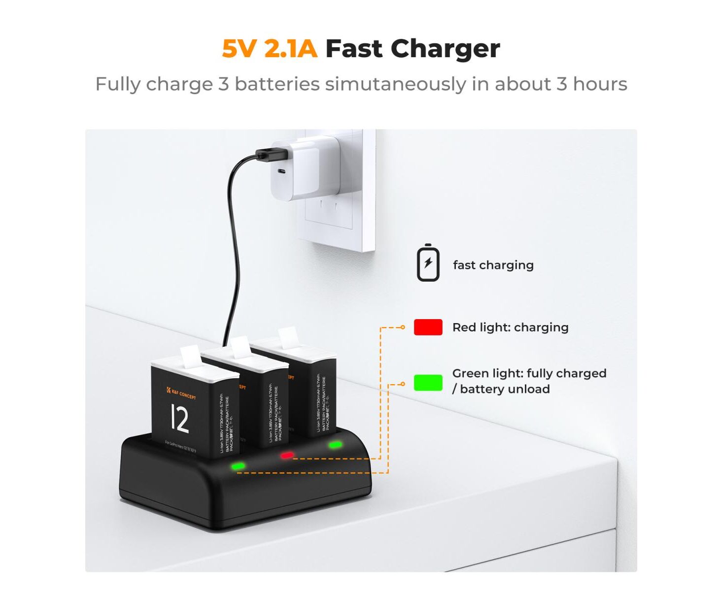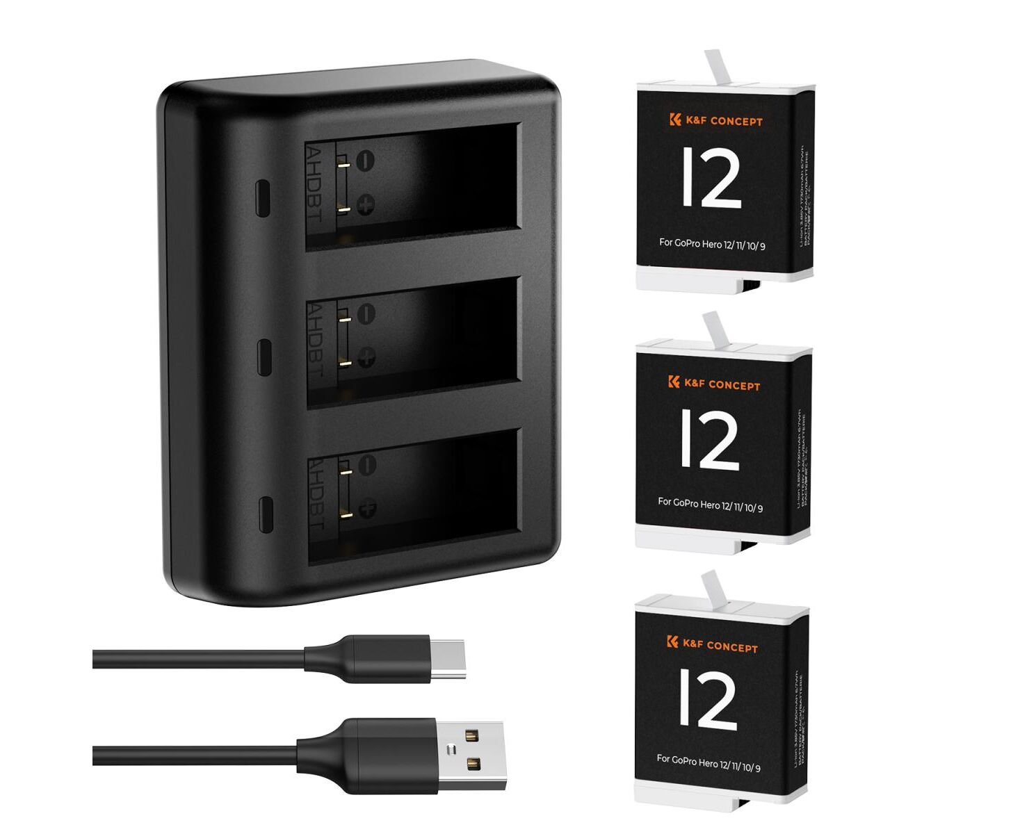 K&F CONCEPT Kit 3 Gopro Hero Batteries + Triple Charger