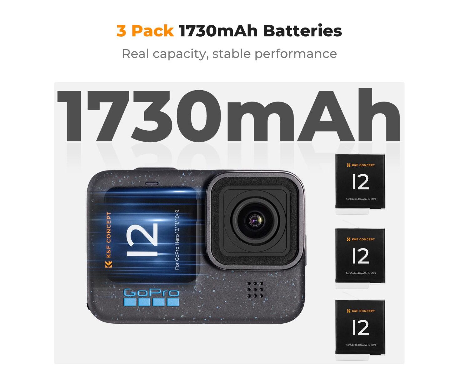 Perfectly fit for black GoPro Hero 9/10/11/12 cameras with high-quality batteries for long-lasting durability.