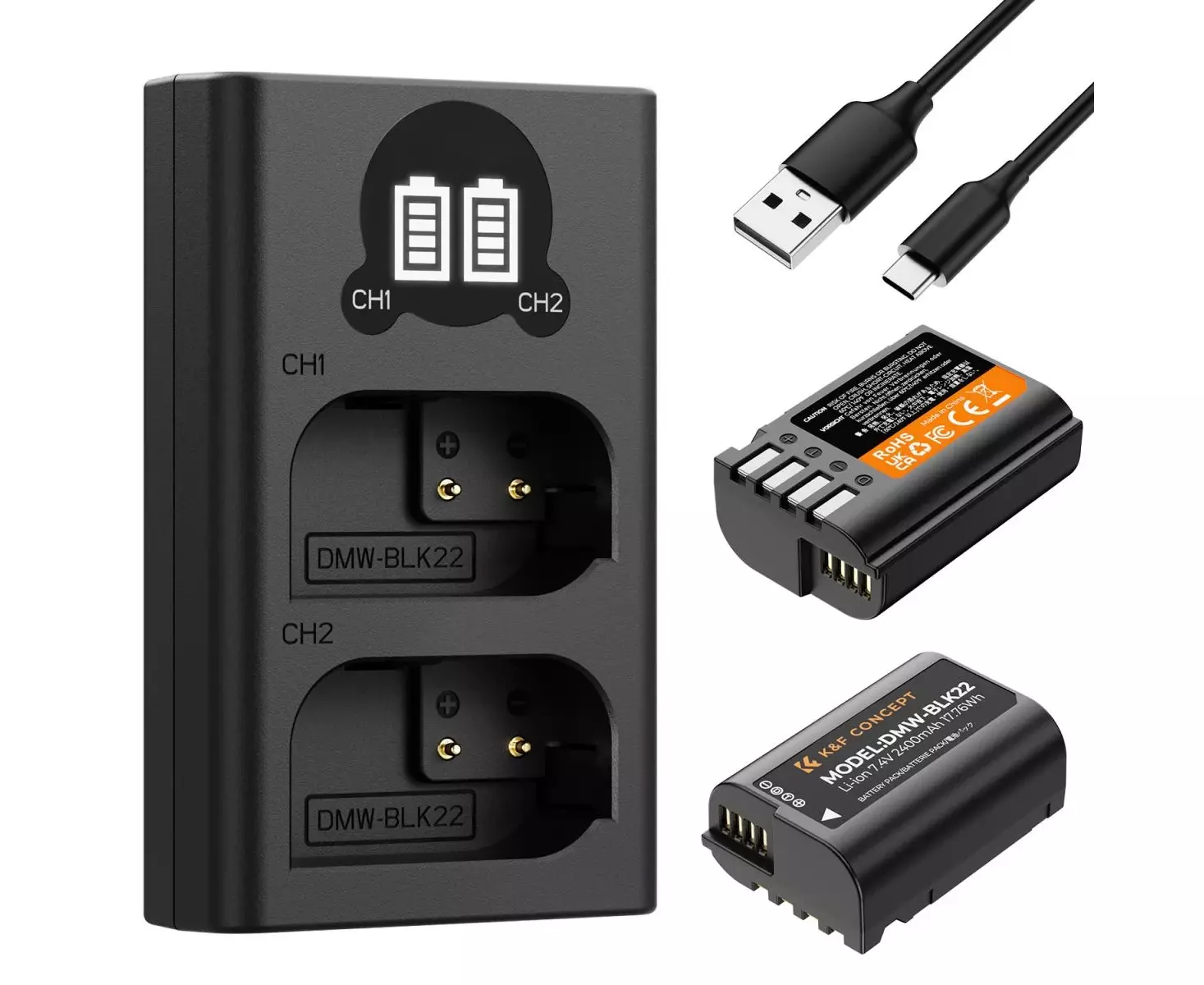 K&F CONCEPT Dual Charger Kit + 2 DMW-BLK22 2400mAh Batteries
