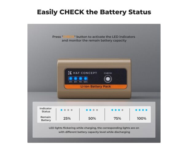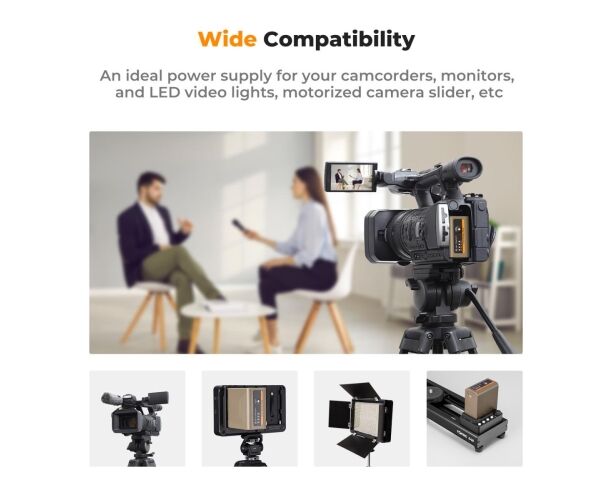 Suitable for replacement batteries for Sony models using Sony NP-F550, NP-F570, NP-F750, NP-F770, NP-F930, NP-F950, NP-F960, NP-F970 batteries, and also suitable for LED camera lights, live monitors, and sliders.