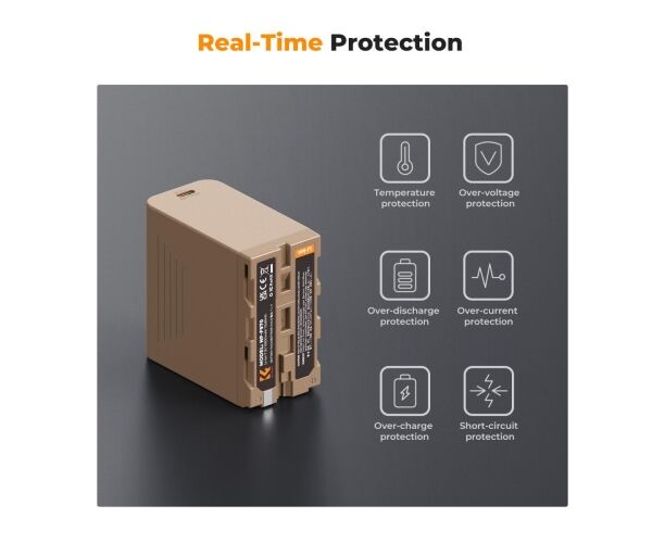 This NP-F970 battery pack has a high-current USB Type-C (PD3.0/20W) charging port, which takes only 4.8 hours to fully charge, which reduces the charging time by 40% compared to conventional charging.