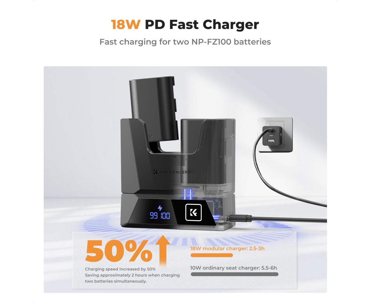 With 18W PD fast charging, this lp-e6nh charger increases speed by up to 50% with 8.4V 1.5A for one battery and 1A for two batteries, charging your batteries significantly faster than traditional chargers.