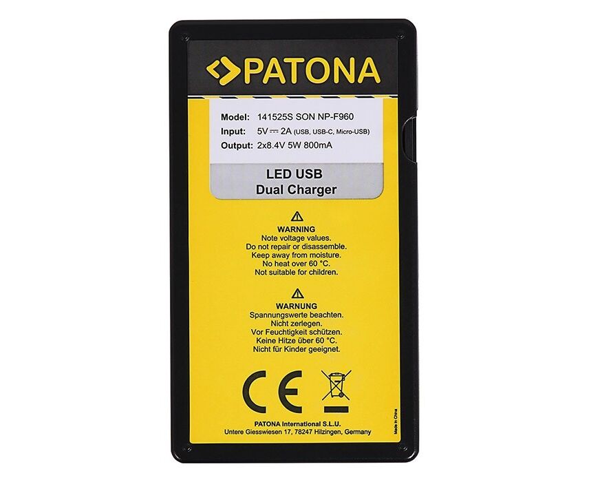 1x PATONA Dual LED USB Charger for 2 Sony NP-F and NP-FM Batteries