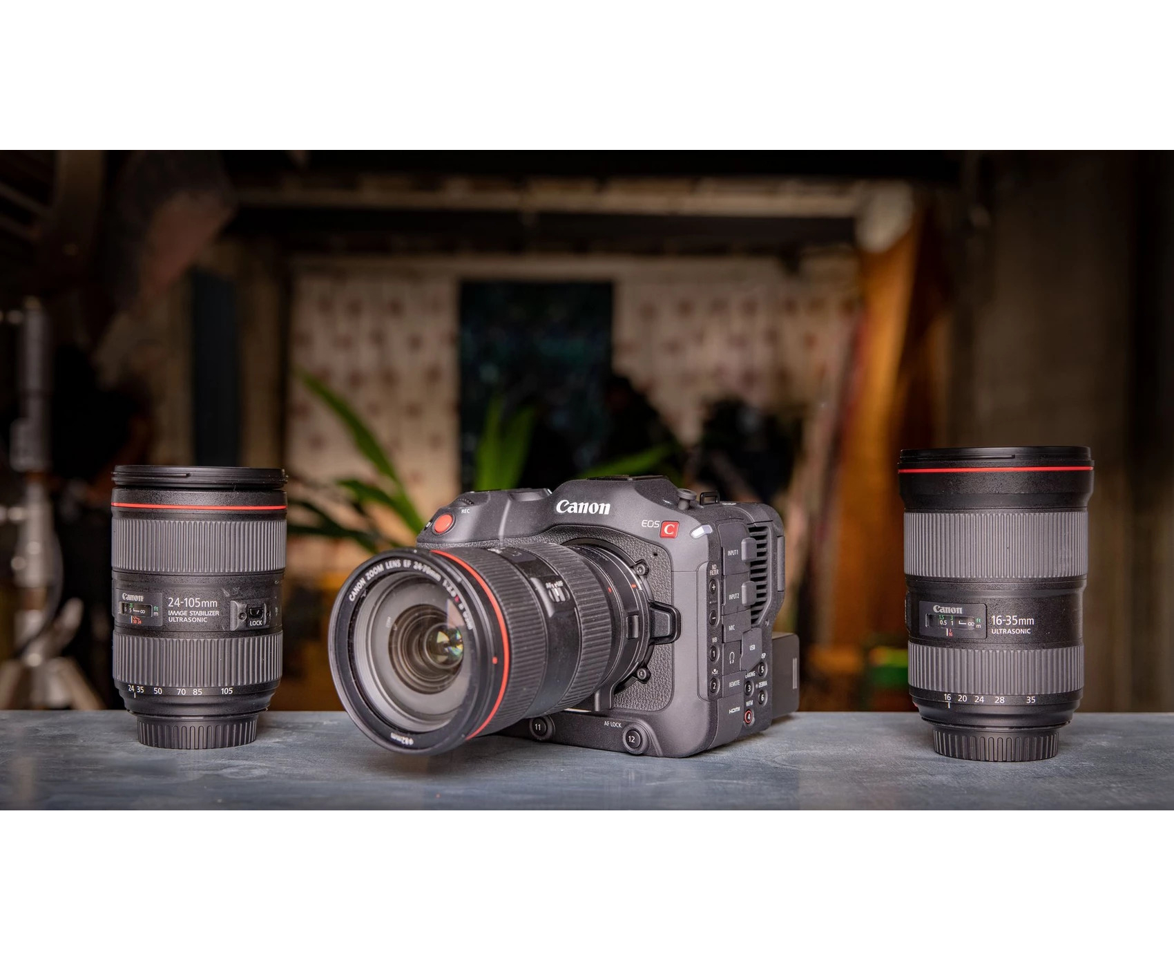 The adapter offers the same angle of view when using full-frame lenses on the EOS C70's Super 35mm sensor, adapting the focal length by a factor of 0.71x from full-frame to Super 35mm format.