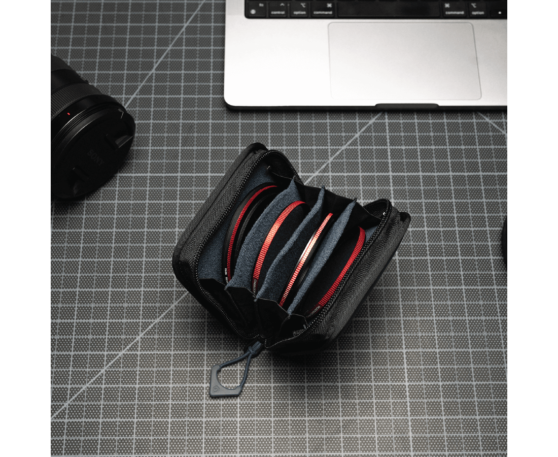 The lens filter case is a must-have for photographers who want to keep everything organized and hassle-free. This compact case comfortably holds up to 4 lens filters and with one-handed access. The soft-touch inner lining protects your filters from scratches, while the EVA foam-reinforced exterior provides all the protection you need. This case will be your inseparable companion in all your photoshoots.