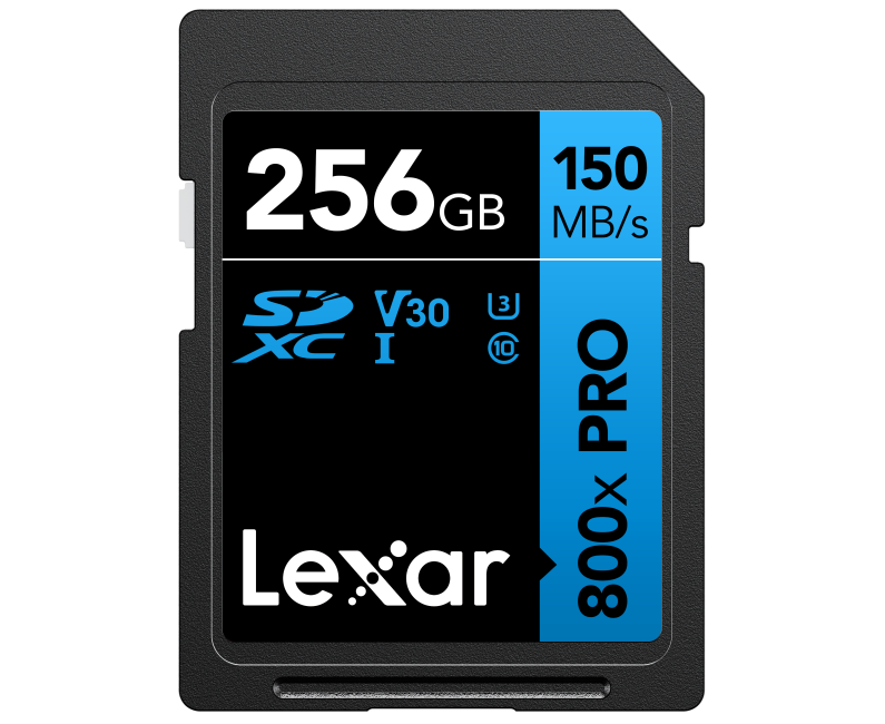 The Lexar ® High-Performance 800x PRO SDHC™/SDXC™ UHS-I BLUE Series cards are designed for HD stills and camcorders. They feature fast transfer speeds of up to 150MB/s so you can seamlessly capture and quickly transfer high-quality images and 4K UHD video.