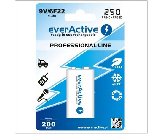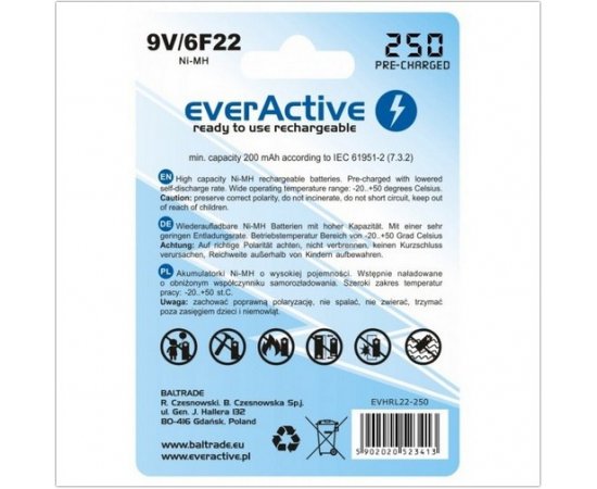 1x EVERACTIVE NiMh 9V 6F22 250mAh Battery