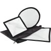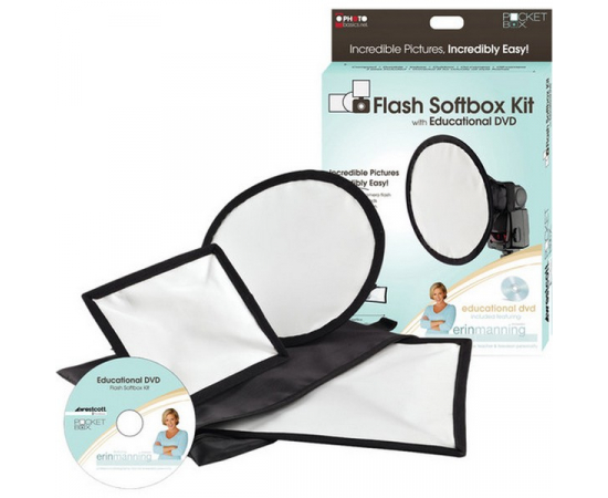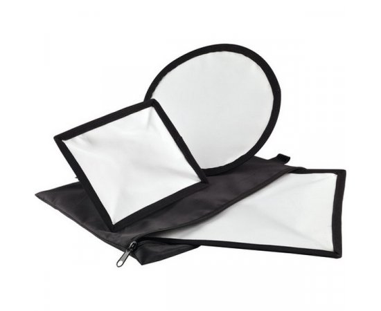 The kit is designed to be used with any external flash. It can be assembled in seconds, softens the bright light of the flash and eliminates red eyes. The kit comes with three compact softboxes of various sizes and shapes to familiarize yourself with the characteristic light and reflection properties provided by each type of softbox.