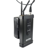 The Godox FL150S can be powered in two ways, with an optional V-mount lithium-ion battery or the supplied AC adapter.