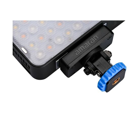 The Amaran Ace 25c RGB LED is a versatile, creator-friendly light source that installs quickly and is easily transported. When used in Boost mode, the 32W output of the light provides 1171 lux at 1m and 5600K, with approximately 50 minutes of runtime at this maximum setting. The light also records more than 4 hours and 40 minutes of operating time in its low-consumption silent mode. The Ace 25c has 360° color control in RGB and hue, saturation and intensity modes, and a CCT color temperature range of 2300-10,000K with a green/magenta adjustment option. In all its modes, the Ace 25c achieves a high colour accuracy of 95 in CRI and TLCI ratings. The lamp's internal rechargeable battery recovers 90% of its charge in just 40 minutes with the included USB-C charging cable, reaching a full charge in approximately 90 minutes. The included cold shoe lock adapter makes the light easy to mount in any chamber with a hot shoe bracket, and a 1/4"-20 thread on the bottom of the fixture allows for mounting on most light brackets. The Ace 25c's magnetic accessory mount accepts modifiers such as the included dome diffuser, while a rear magnetic silicone pad allows the light to be mounted on any magnetic surface.