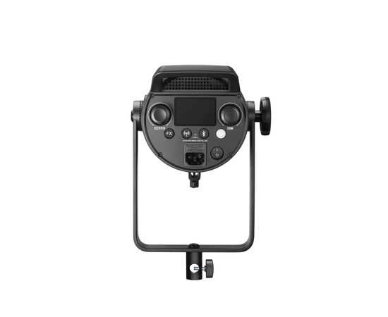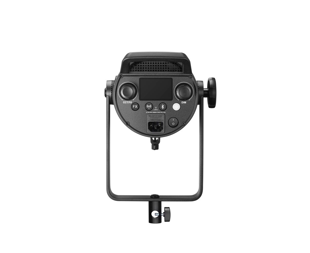 The 360° U-shaped rotating yoke adjusts for optimal lighting with various modifiers and nearby subjects.
