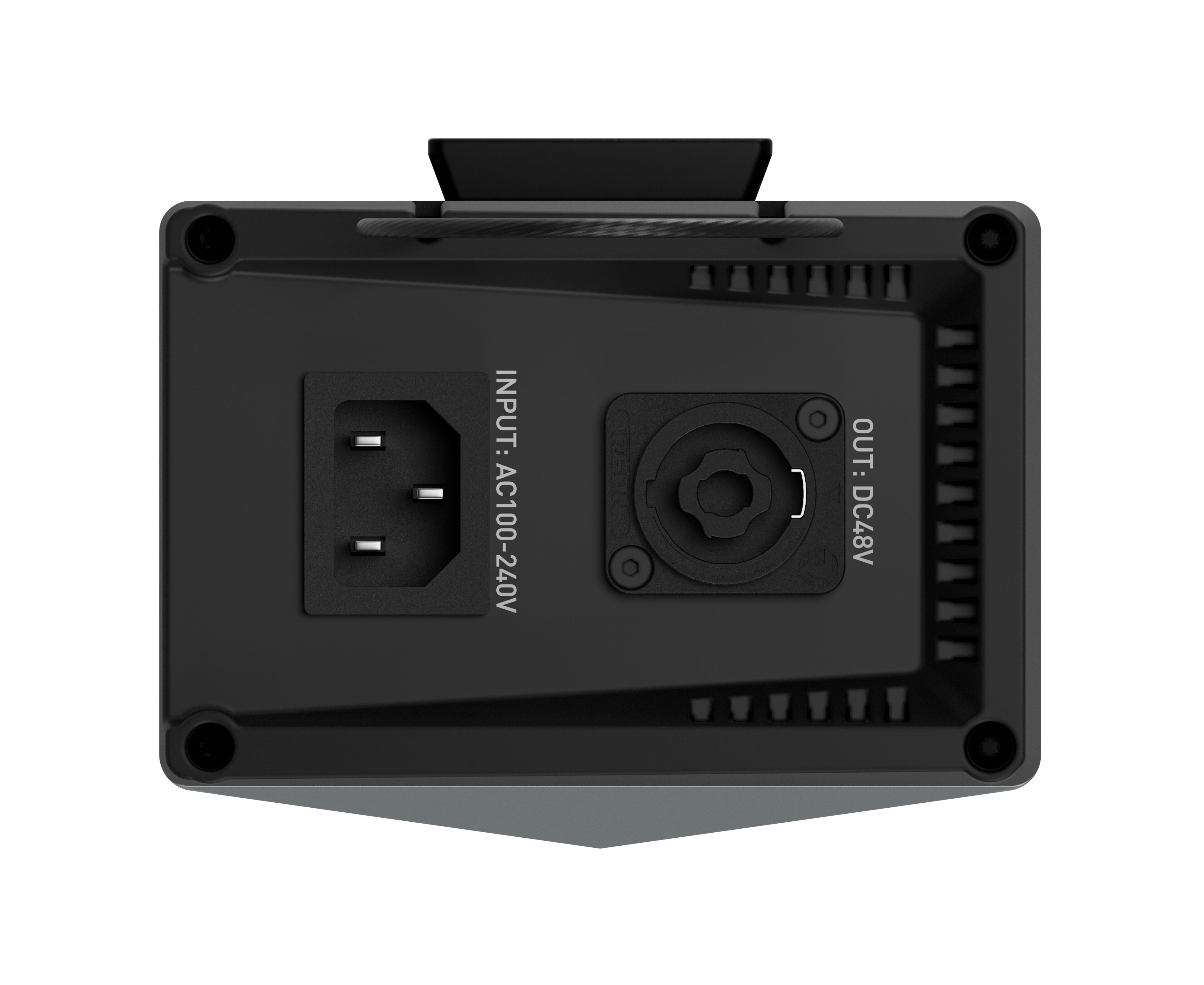 The included power supply has a handle to be hung from a light stand and a quick-release plate is provided to use the separately available ASCPQRFZ clamp.