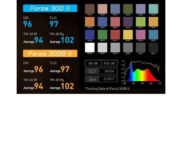 The Forza 300 II has a CRI of 96 and a TLCI of 97, which means you can shoot with confidence knowing that color reproduction will be accurate. In addition to color accuracy, the light offers 11 built-in customizable effects that can be saved as presets using the free NANLINK app.