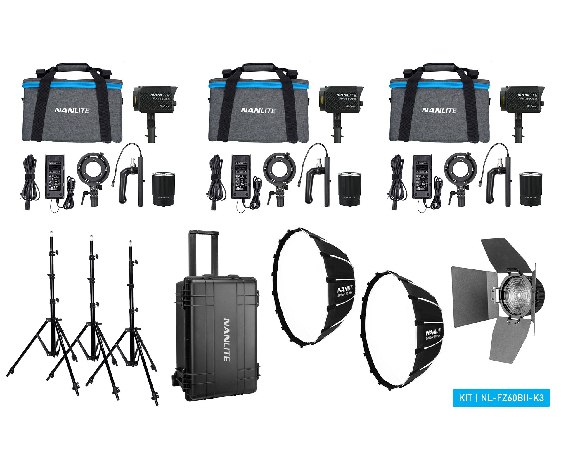 NANLITE FORZA 60B II Bi-Color LED Triple Illuminator Kit