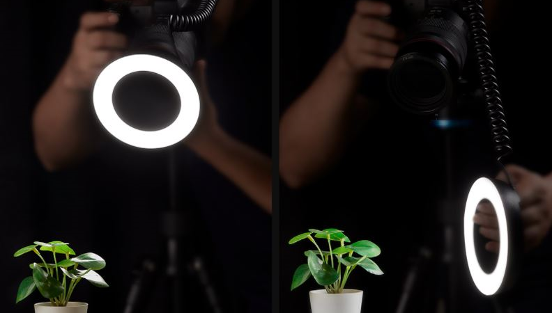 For greater control over the light, users can choose between having the entire ring on or just the left or right side, allowing users to control how the light falls on the object.