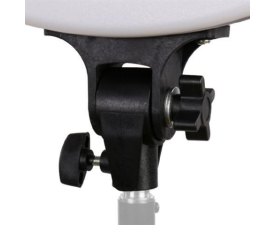 At the bottom of the ring light is a tap adapter, which allows you to attach the illuminator to the included table stand and position it fully to your preference.