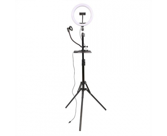 StudioKing SK-K190 Bi-Color LED Ring Lamp Set is a universal vloggers set, which consists of a dimmable bi-color LED ring light with smartphone holder, holder, microphone holder and a platform.