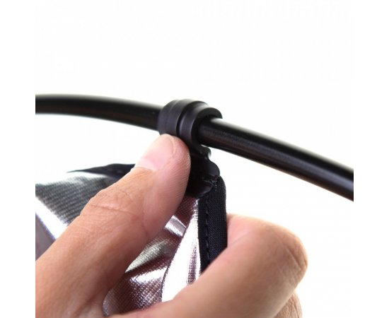 The lightweight foldable aluminium frame snaps into place quickly and the reversible Silver/White light-reflecting fabric simply snaps into place.