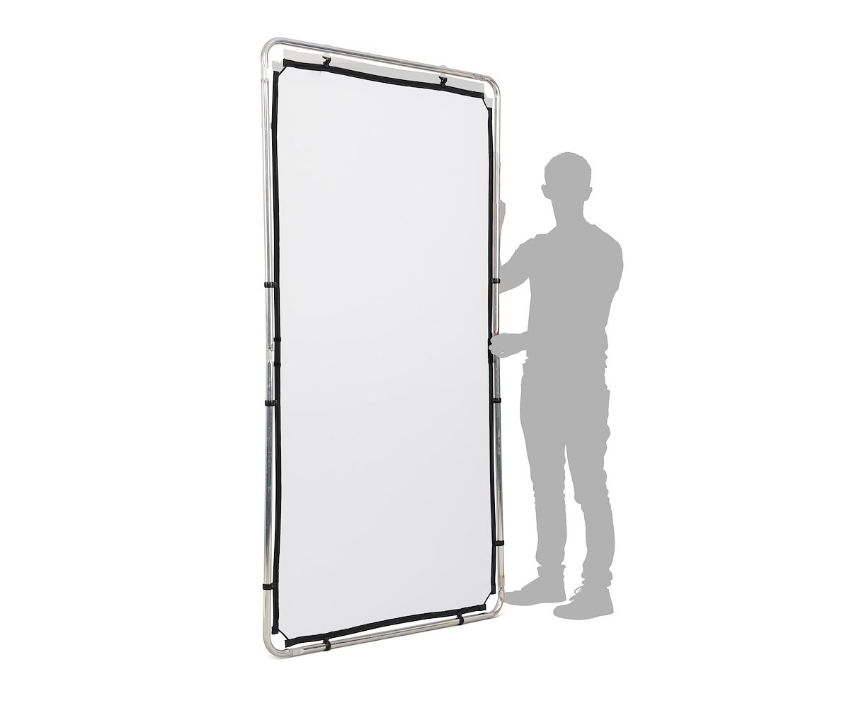 Assembling this innovative kit takes just a few minutes, thanks to its lightweight aluminum frame with integrated bungee cords to hold the entire frame together. Hooks on the fabric covers save time by allowing quick and easy attachment directly to the frame. Changing the covers is extremely simple: just remove the installed cover and place another one directly on the frame, eliminating the hassle of multiple rubber bands. The inner compartment of the hard case, closed with Velcro straps, keeps everything in place until the next shoot. Another fantastic feature of this kit is its sturdy, cinematic-style ears; Attach them to both sides of the frame and fit them into the chrome-plated steel attachment heads. The frame can be precisely positioned where needed when attached to any pair of rugged lighting tripods with a 16 mm (5/8") pin.