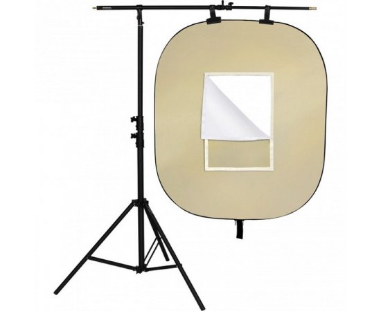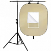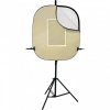 Westcott's Omega Reflector Kit is the innovative light control system that features a removable 2:3 center with 5 surfaces interchangeable as traditional reflectors, these include a white, silver, sunlight , black and white diffuser.