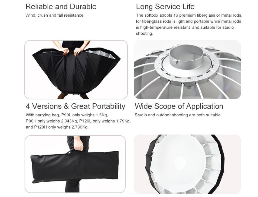 The 16-angle softbox is suitable for fashion and portrait photography.