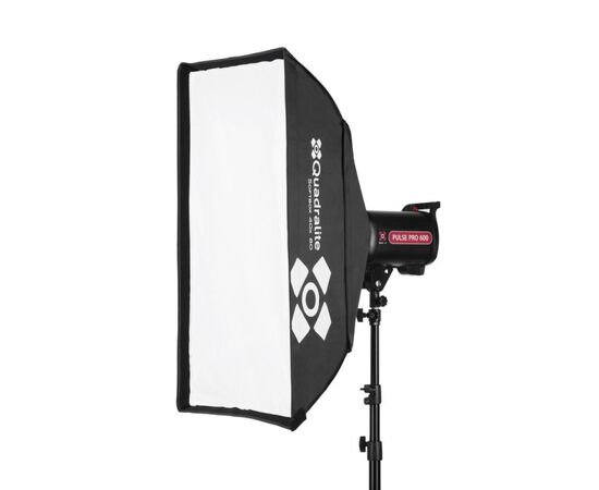 Like other Quadralite softboxes, the device is equipped with two diffusion planes. This provides a more even light distribution. It is possible to easily and quickly disassemble one of the diffusers as needed. The inner part of the fabric is finished with a high-quality silver screen with a non-uniform surface, which evenly distributes the light over the planes of the diffuser. The front features a flange used to mount a honeycomb grill.