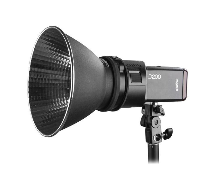 The Godox AD200 Adapter for Profoto Accessories allows the use of Profoto accessories, such as reflectors, speedrings and softboxes, in the Godox AD200 Pocket Flash.