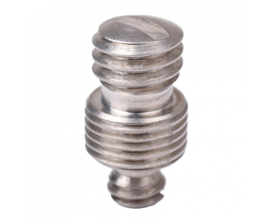 The screw has a 3/8" thread on one end and a 1/4" thread on the other.